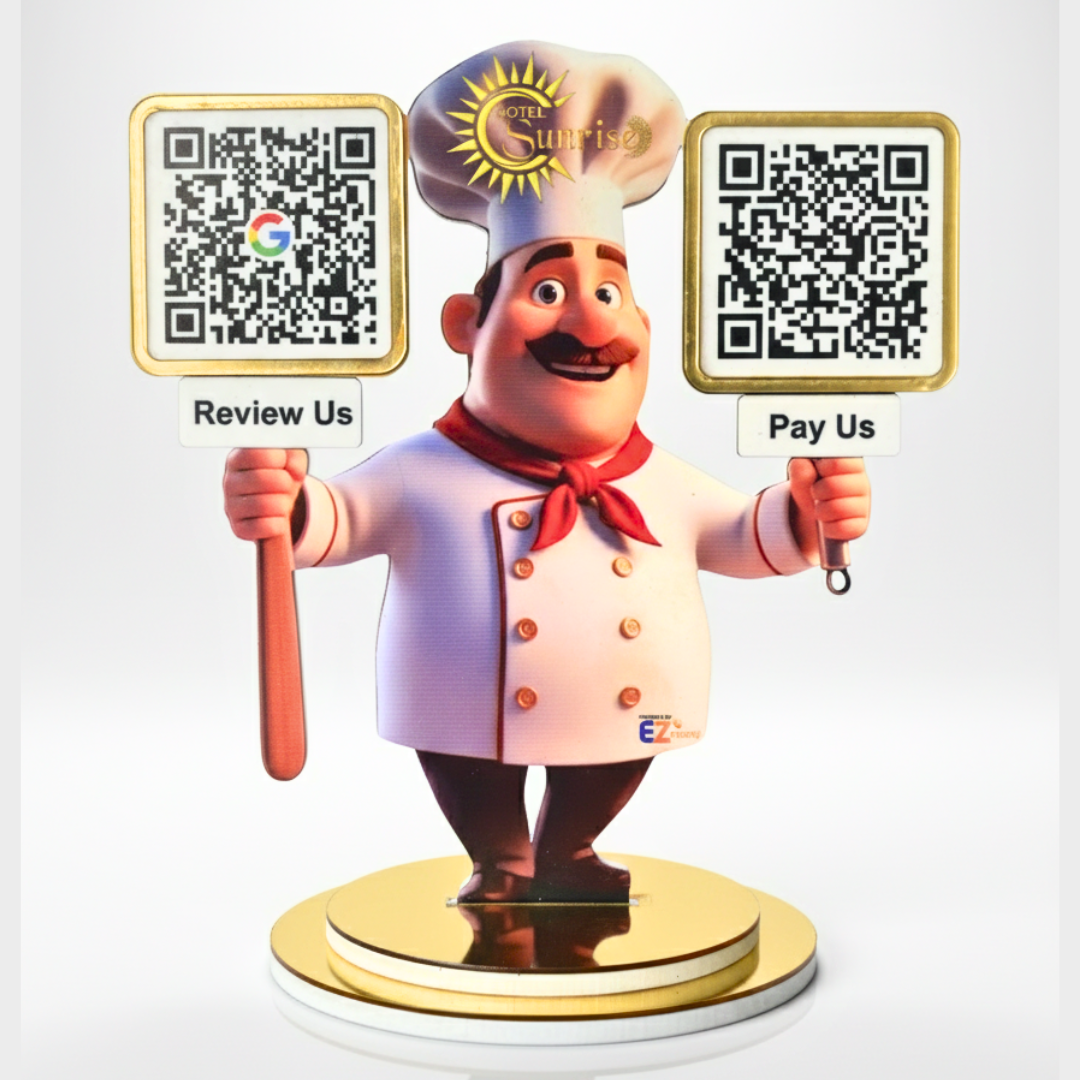 Chef Cutout Smart NFC 2QR Standee – For Restaurant