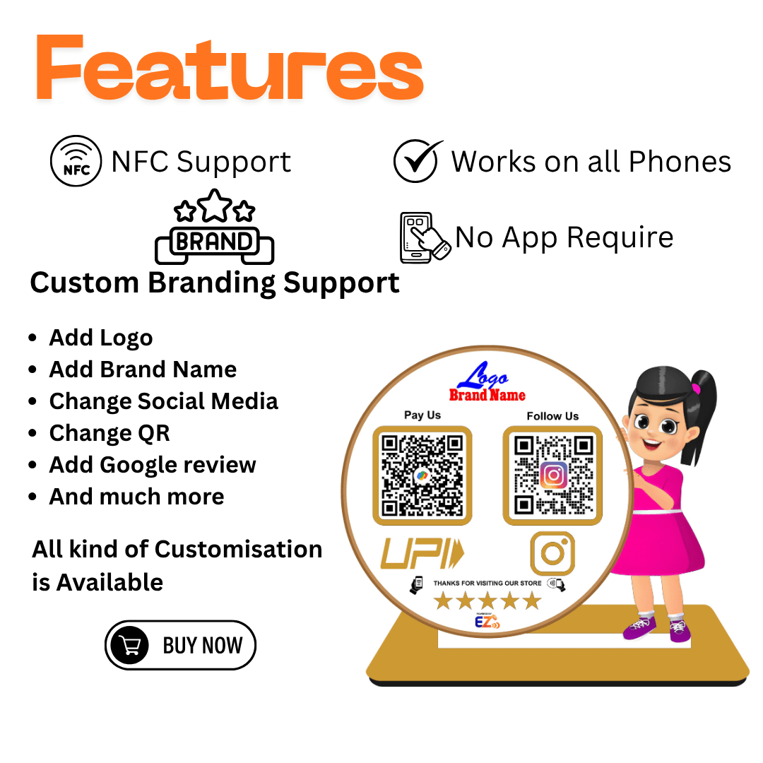 Our customized NFC-enabled standees are designed to revolutionize customer interaction and elevate your brand. These standees are versatile, stylish, and packed with smart features, making them the perfect addition to any business setup.