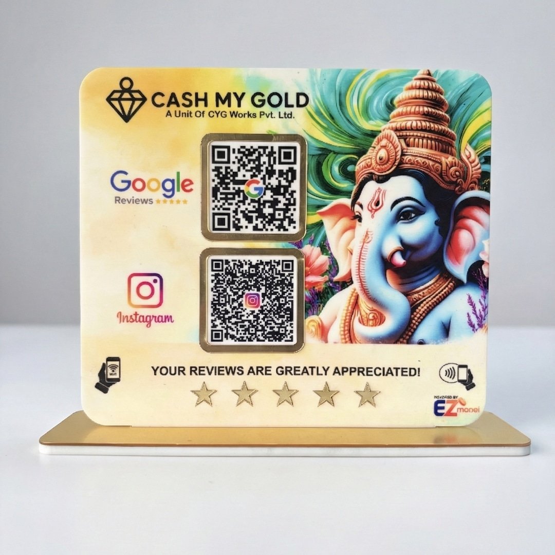 Smart NFC 2-in-1 Ganesh Maharaj Google & Instagram Standee | 8 x 7 inch