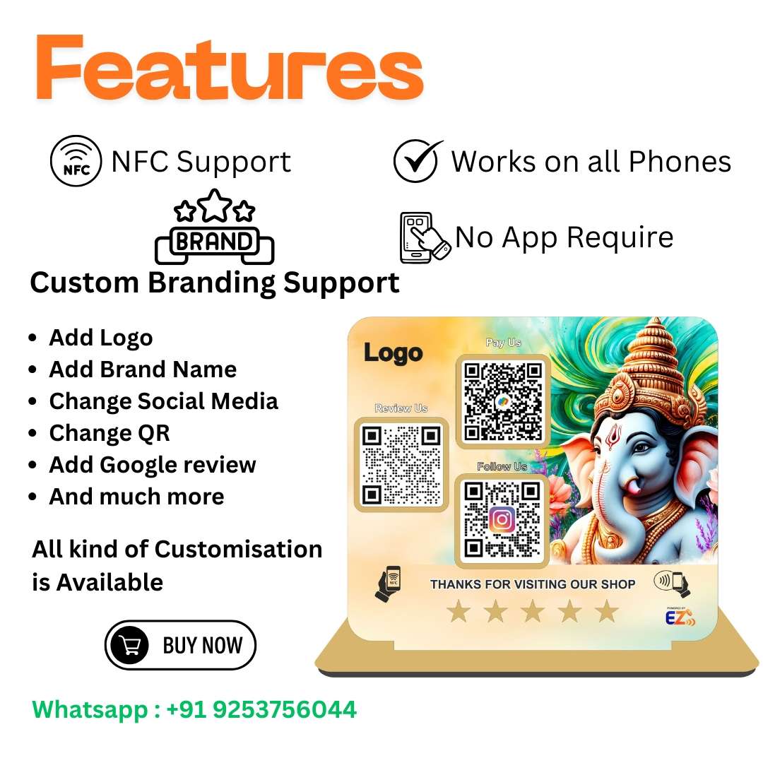 Customised Smart NFC 3 QR Standee | UV Printed | Ganesh Maharaj