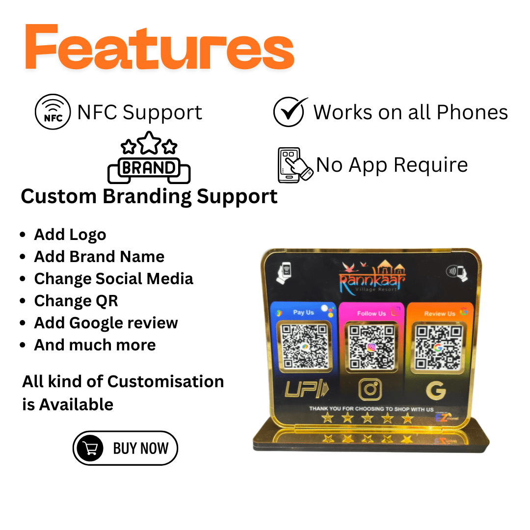 Our customized NFC-enabled standees are designed to revolutionize customer interaction and elevate your brand. These standees are versatile, stylish, and packed with smart features, making them the perfect addition to any business setup.