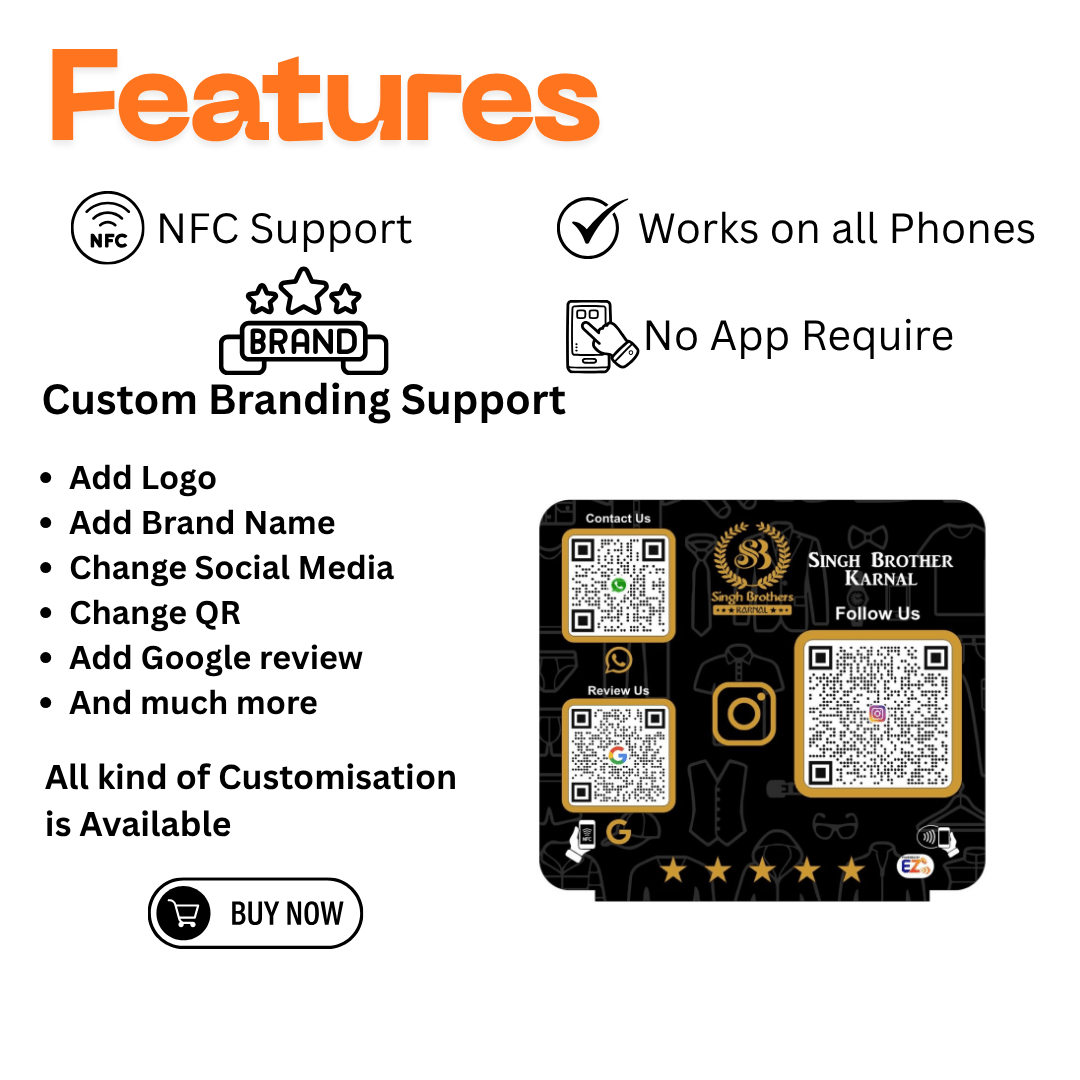 Our customized NFC-enabled standees are designed to revolutionize customer interaction and elevate your brand. These standees are versatile, stylish, and packed with smart features, making them the perfect addition to any business setup.